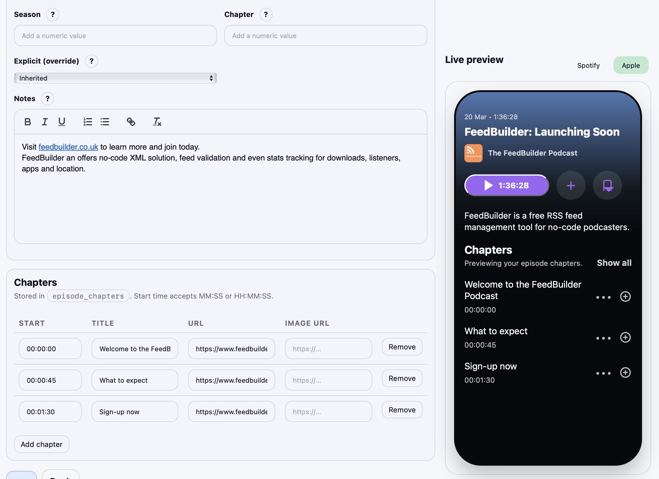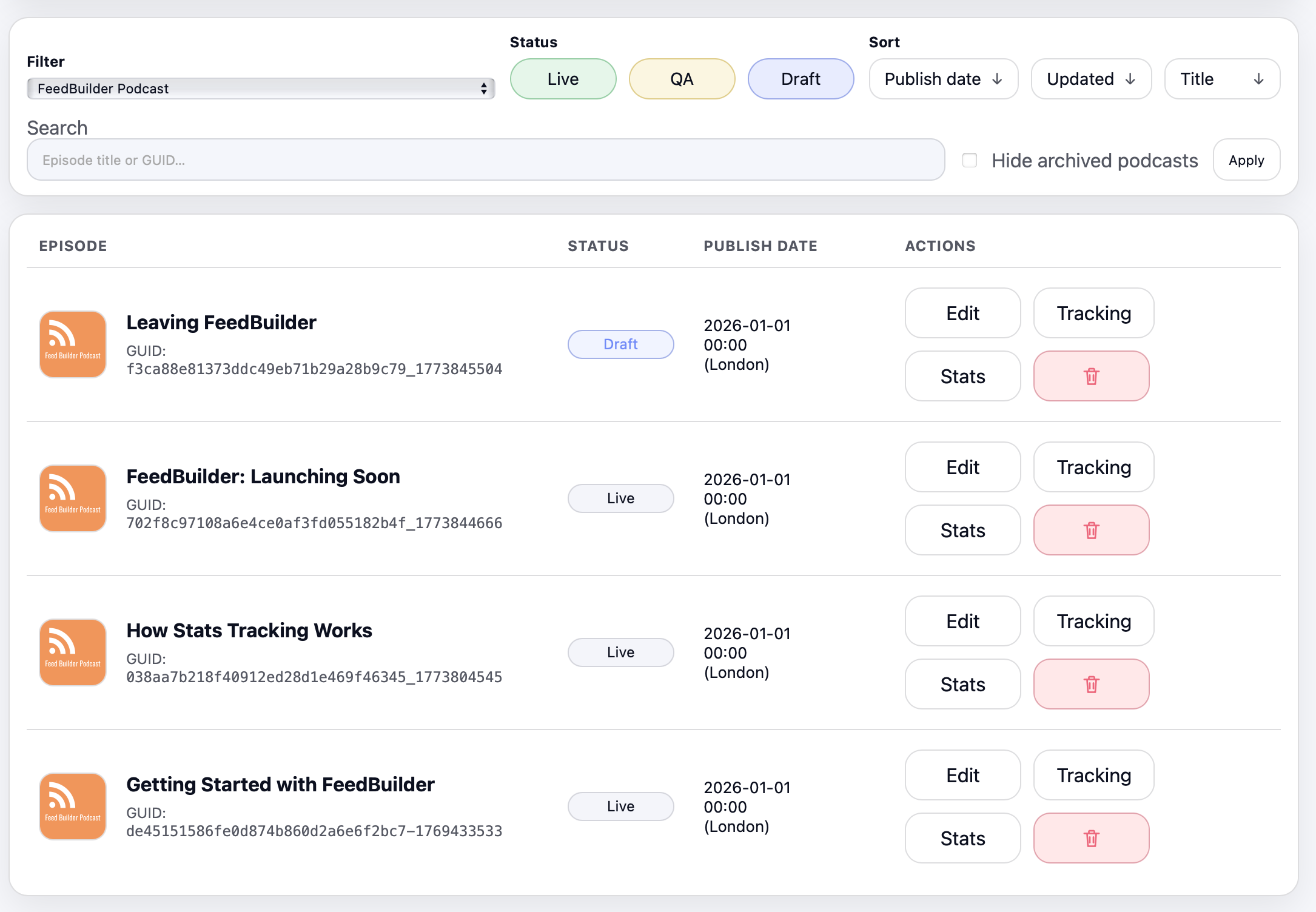 Built to support code-free RSS feed management built for podcasters wanting to take advantage of the powerful scaling of RSS feeds.